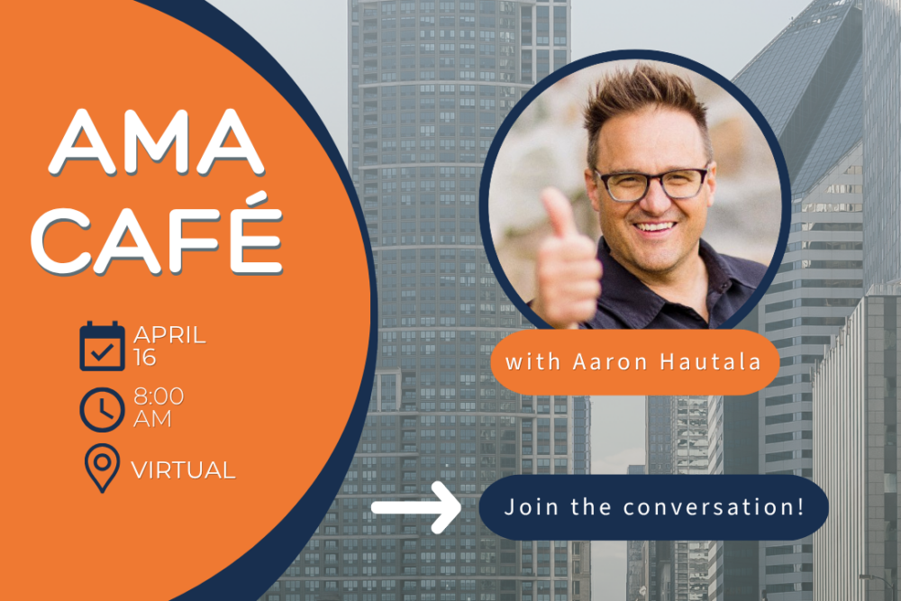 AMA Café is a virtual networking and career development event hosted by AMA Minnesota. Open to all chapter members and nonmembers. It’s a space for the AMA Community to come together for connection and to learn more about the AMA and have some fun.